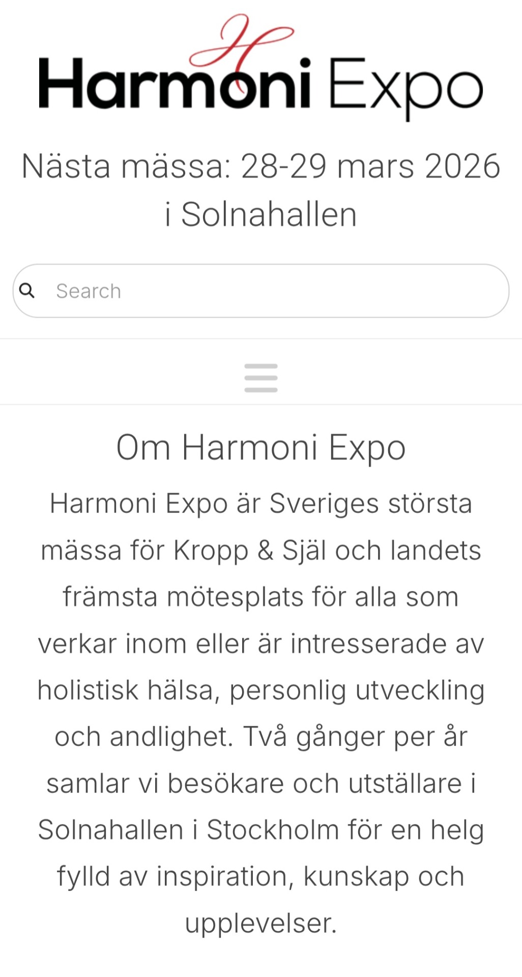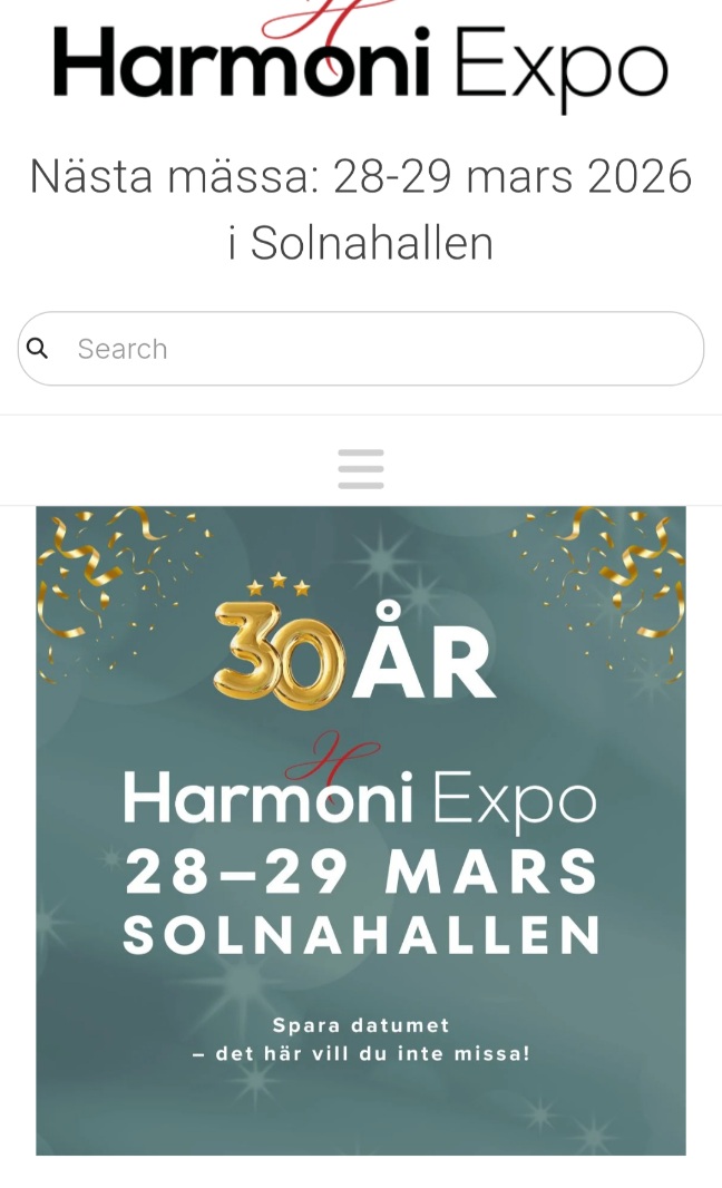 Harmoni Expo 28-29 mars 2026 i Solnahallen.